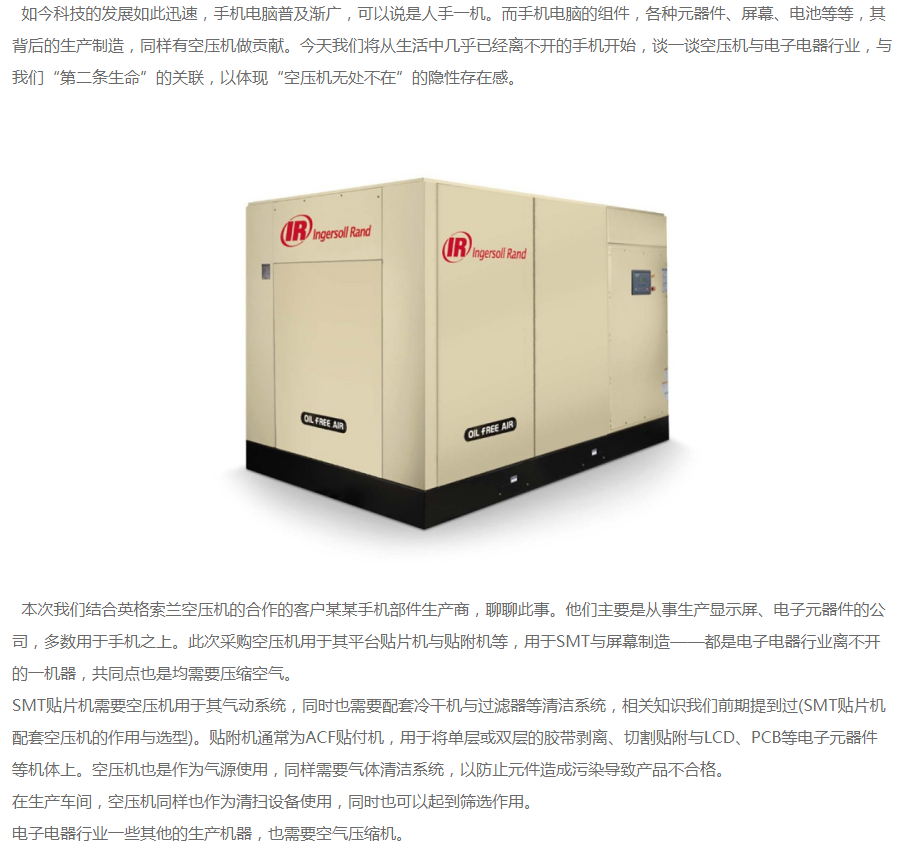 空壓機(jī)在手機(jī)行業(yè)的應(yīng)用-英格索蘭空壓機(jī)