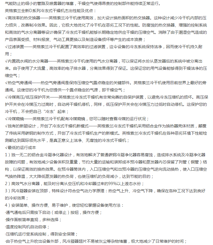 •        濟(jì)南銳博特機(jī)械設(shè)備有限公司是英格索蘭空氣壓縮機(jī)的授權(quán)代理商,代理銷售美國英格索蘭全系列的空壓機(jī)及后續(xù)處理設(shè)備。公司自成立以來,經(jīng)過公司全體同仁不斷努力,開拓創(chuàng)新,以優(yōu)良的技術(shù)、完善的售后服務(wù),使得公司贏得了一個又一個的誠心客戶。我公司擁有多名專業(yè)的銷售及售后服務(wù)人員,為客戶提供空壓系統(tǒng)的售前、售中及售后的全方位優(yōu)質(zhì)服務(wù)。另公司有多名具有英格索蘭壓縮機(jī)授權(quán)服務(wù)證書的服務(wù)工程師,能維修和保養(yǎng)國內(nèi)外各種品牌空壓機(jī),公司各種國內(nèi)外品牌空壓機(jī)配件庫存齊全。
